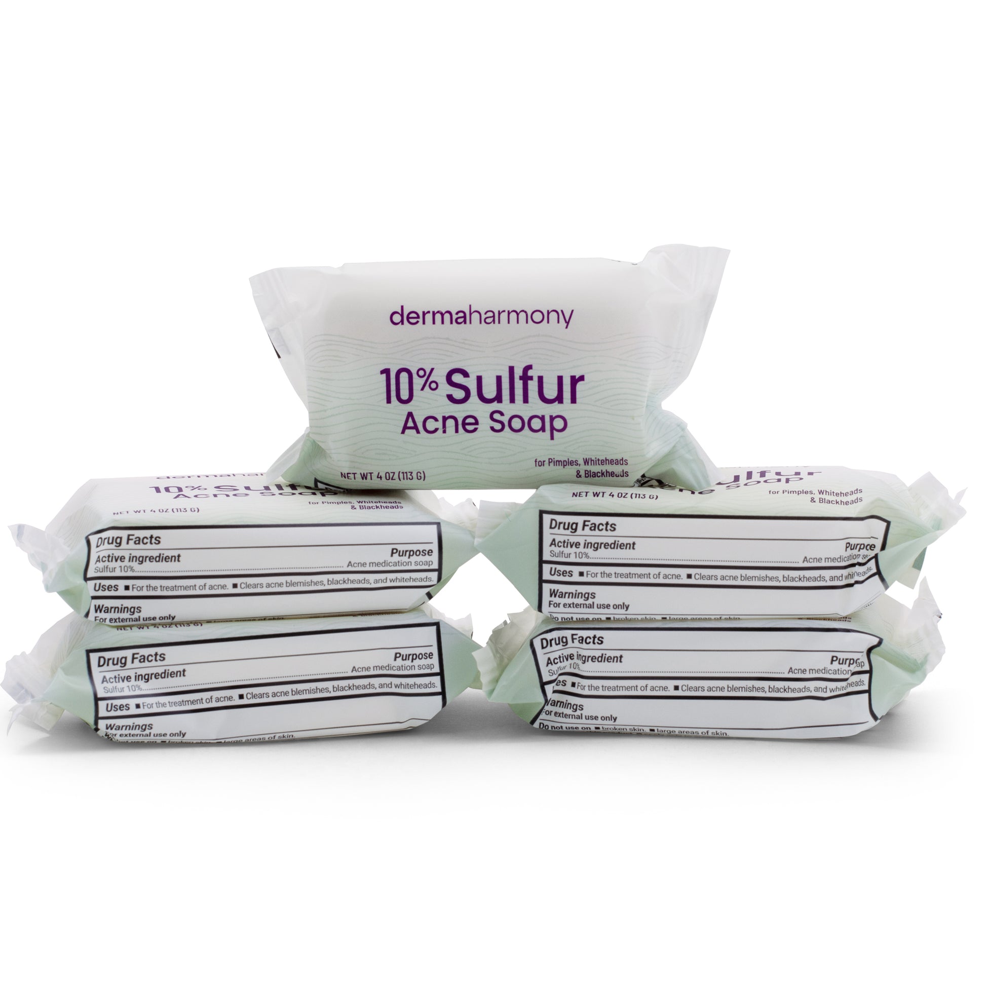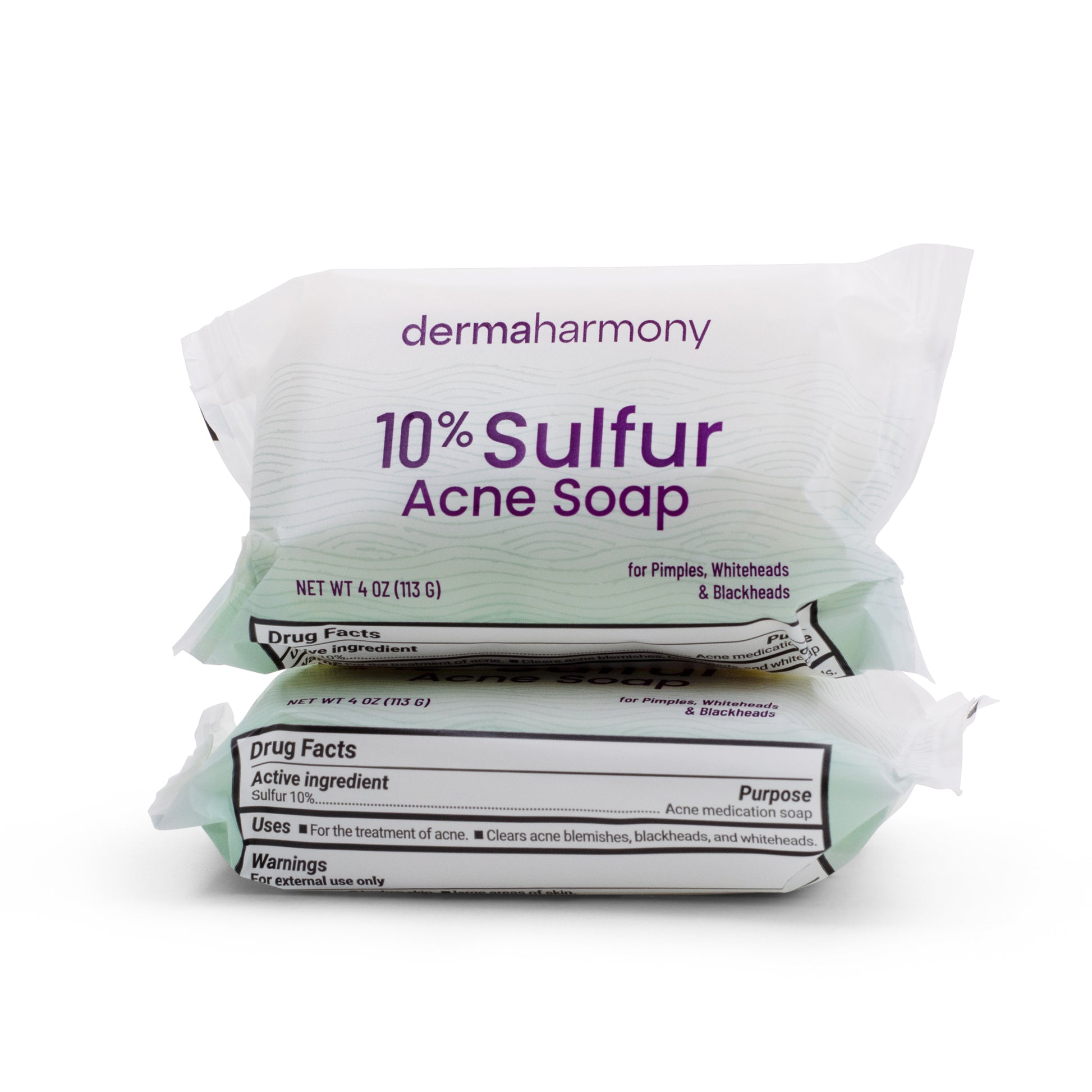 DermaHarmony 10% Sulfur Bar Soap is an over-the-counter acne medication formulated with the maximum monograph-permitted concentration of sulfur (10%). Sulfur is generally recognized as safe and effective (GRASE) by the FDA for the treatment of acne.