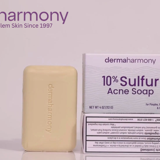This acne bar soap penetrates pores to reduce the number of acne blemishes, acne pimples, blackheads, and whiteheads — and allows skin to heal. With consistent daily use, it helps prevent new acne blemishes from forming. Thousands of customers use DermaHarmony sulfur soap as an affordable OTC acne treatment — with a cleaner ingredient list, no parabens, and no fragrance.