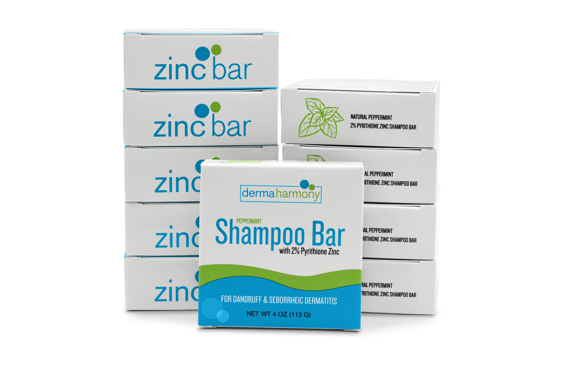 The DermaHarmony 2% Pyrithione Zinc Peppermint Dandruff Shampoo Bar controls and reduces the symptoms of dandruff and seborrheic dermatitis without a plastic bottle. It helps to stop skin and/or scalp: itching, irritation, redness, flaking, and scaling. The premium formulated plant-based ingredients lather big and rinse well. This gentle Pyrithione Zinc OTC medicated dandruff shampoo bar gives liquid counterparts a run for their money. It's 100% soap-free and uses pyrithione zinc, peppermint, argan oil, and oat flower to treat scalp issues.